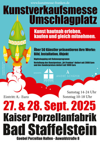 Die Kunstverkaufsmesse Franken findet 2025 in den Produktionshallen auf dem weitläufigen historischen Industrieareal von Goebel und Kaiser-Porzellan in Bad Staffelstein statt. Mehr als 50 Künstlerinnen und Künstler präsentieren ihre Kunstwerke. Die Vielfalt der Kunst reicht von Bildern, Skulpturen, Fotografien, Zeichnungen bis hin zu Installationen und Objekten. Die Kunstmesse in Bad Staffelstein zählt zu den größten Kunstverkaufsmessen in Bayern.