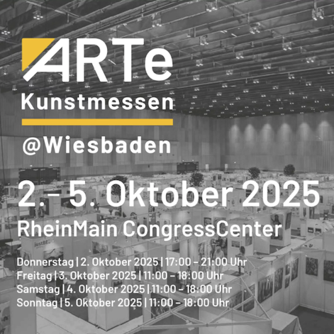 Die ARTe Kunstmesse Wiesbaden findet vom 2. bis 5. Oktober 2025 in ihrer 6. Ausgabe im RheinMain CongressCenter statt.